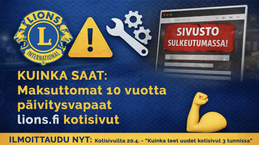 MUISTUTUS!!! Tänään Lions L-piirin presidenttivalmennus klo 18-19.30! Hyvä liontoimija. Maanantaina 23.3. klo 18.00 -19.30 on aika järjestää ensimmäinen presidenttivalmennuksen 1. osa etänä. Kutsu…