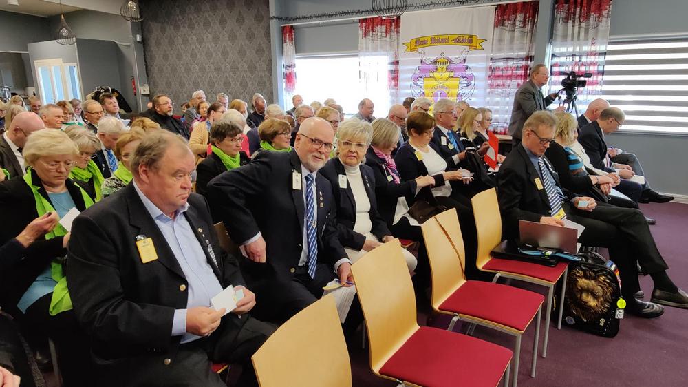 Vuosikokoukseen osallistui runsaasti lioneja puolisoineen monista L-piirin klubeista. Kuva: Heimo Turunen