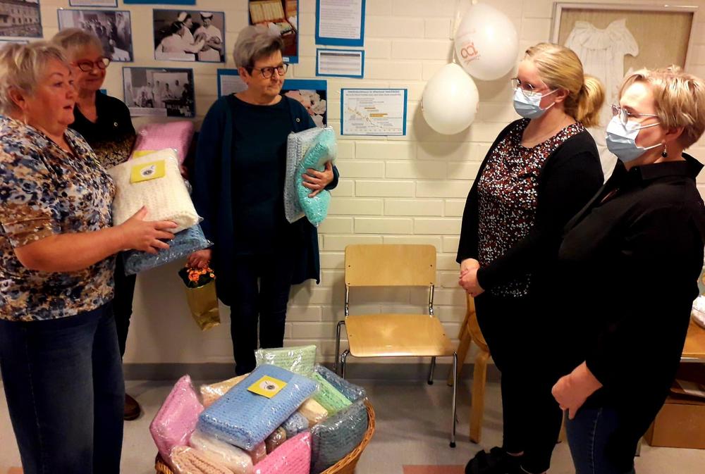 Pellon Leijonat kävivät Onnittelemassa 100 vuotta juhlivaa neuvolatoimintaa. Lahjoitimme naisten sormineulottuja vauvanpeittoja jaettavaksi. Ensimmäinen peitto sai onnellisen omistajan.