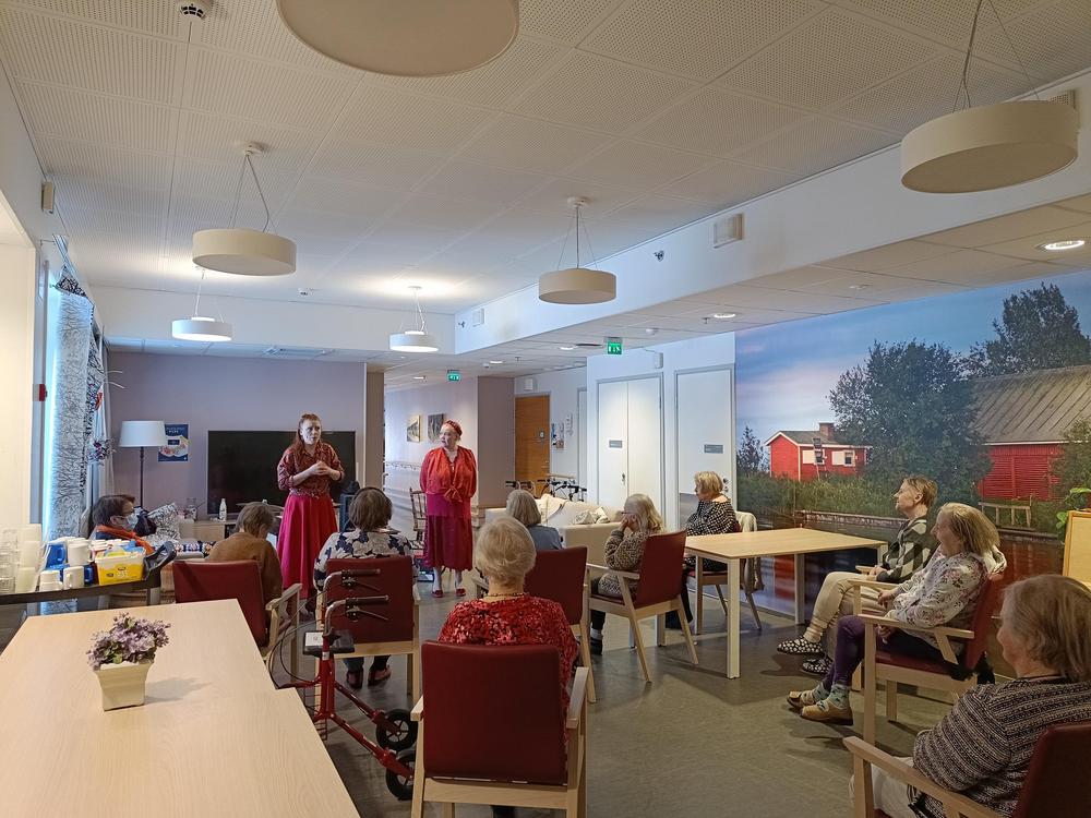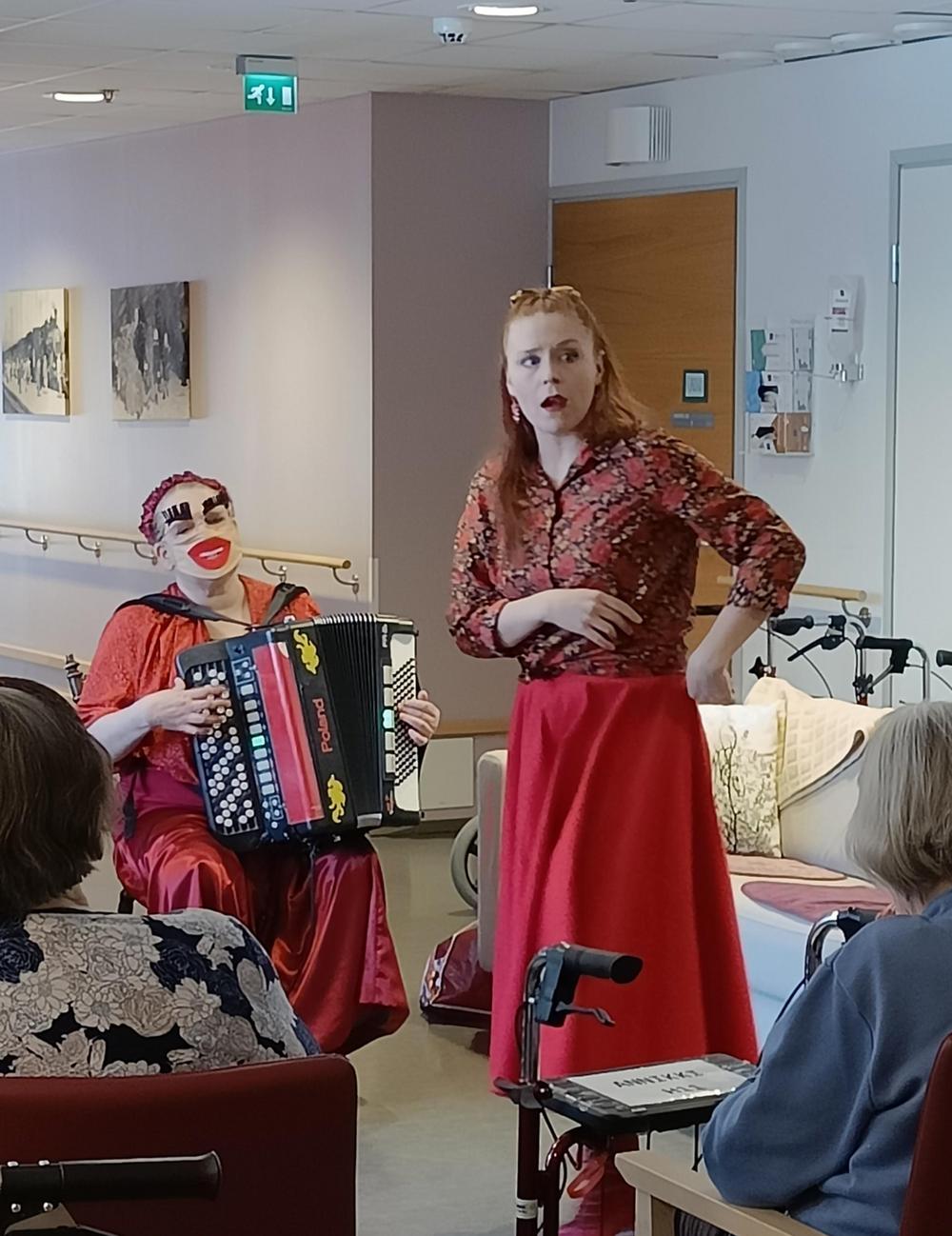 Tänään 1.4. saivat Palvelutalo Attendo Hillankukan asukkaat nauttia Rovaniemen teatterin Rakkaustanssit esityksestä. Tämä musiikintäyteinen esitys kertoo rakkauden riemusta ja ihastumisen ihanuudesta. Esityksen taiteilijat ovat näyttelijä Siiri Partanen ja muusikko Minna Siitonen.