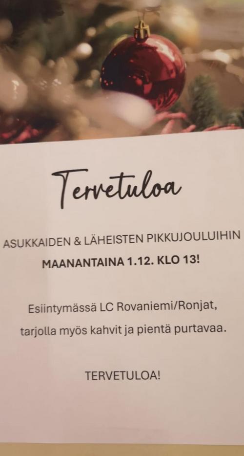 Tonttulakkipäivänä Ronjat starttasivat joulukuun yhteislauluilla Veitikan jaksohoitokodissa.