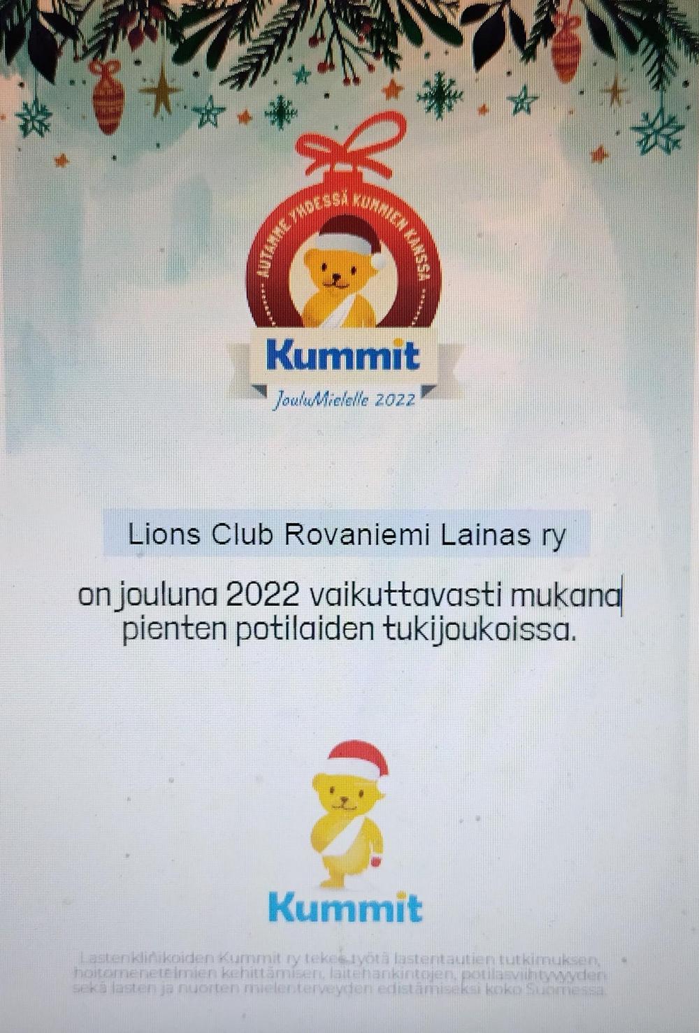 Olimme mukana Lasten klinikoiden Kummien järjestämän JouluMielen konsertissa lahjoittamalla varoja hyvään tarkoitukseen.