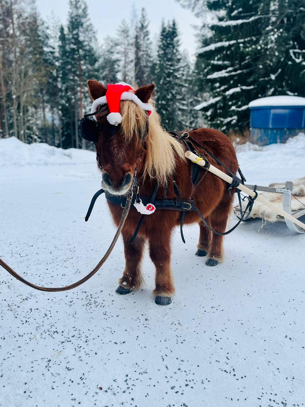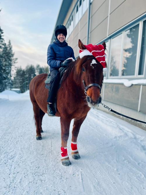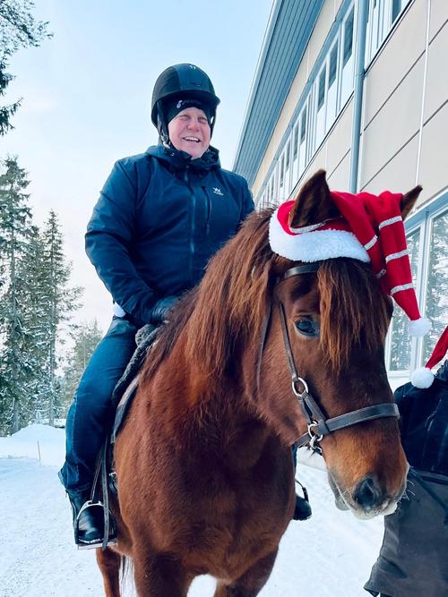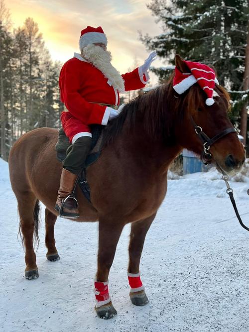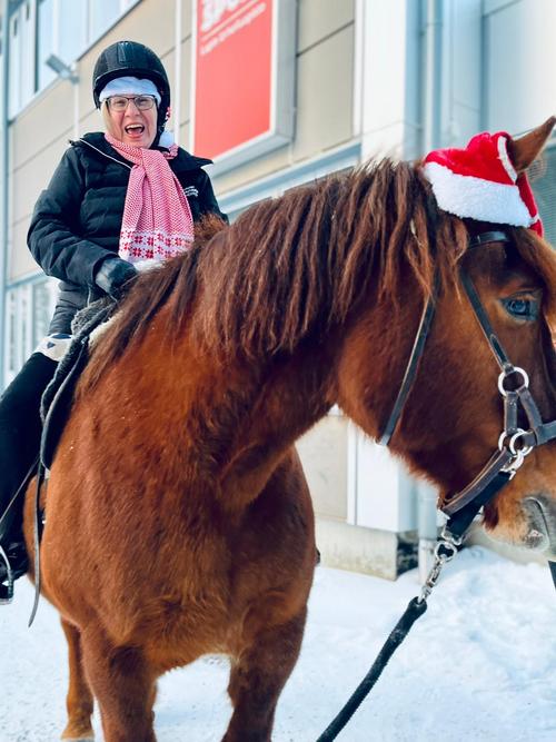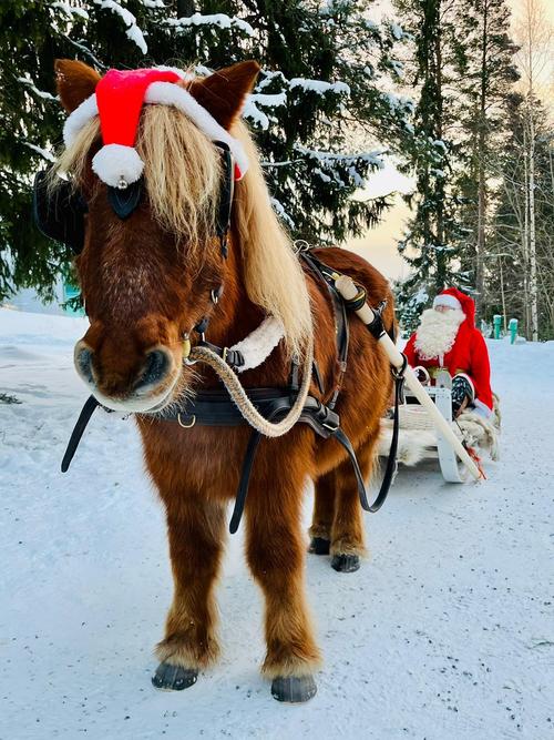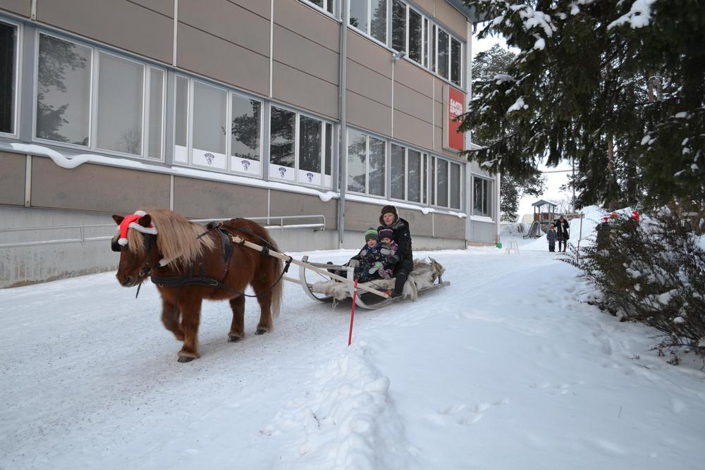 Uutena juttuna joulumyyjäisissä oli Kotatulen järjestämää rekiajelua sekä talutusratsastusta Santasportin läheisyydessä. Tämä saavuttikin joulumyyjäiskävijöiden suosion välillä ihan jonoksi asti. Myös meidän oma Joulupukkimme uskaltautui kokeilemaan ratsastusta ja toki myös hevosrekiajelua, mikä oli hänelle hieman tutumpaa hommaa. Mutta ei nyt varmaan vielä kuitenkaan vaihtaisi poroja reen edestä pois.. !