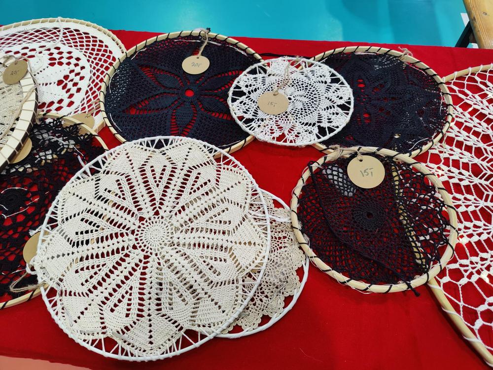 Myyjäisissä oli esillä jälleen todella runsaasti aivan mielettömän upeita käsintehtyjä tuotteita monista eri materiaaleista monilla eri käsityötekniikoilla toteutettuina. Tarjolla oli myös herkullisia leivonnaisia ja leipäsiä, eksoottisia ruokia, mausteita, koruja, miniatyyriesineitä, hattuja, pipoja, vaatteita, puusta valmistettuja tuotteita, kirjoja, tauluja, leluja jne. Kerrassaan hienoja kädentaidonnäytteitä!