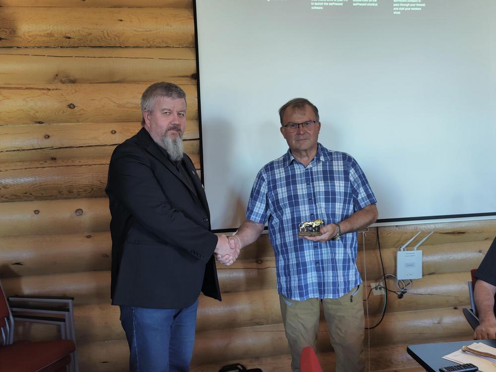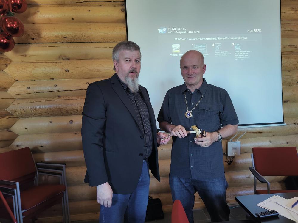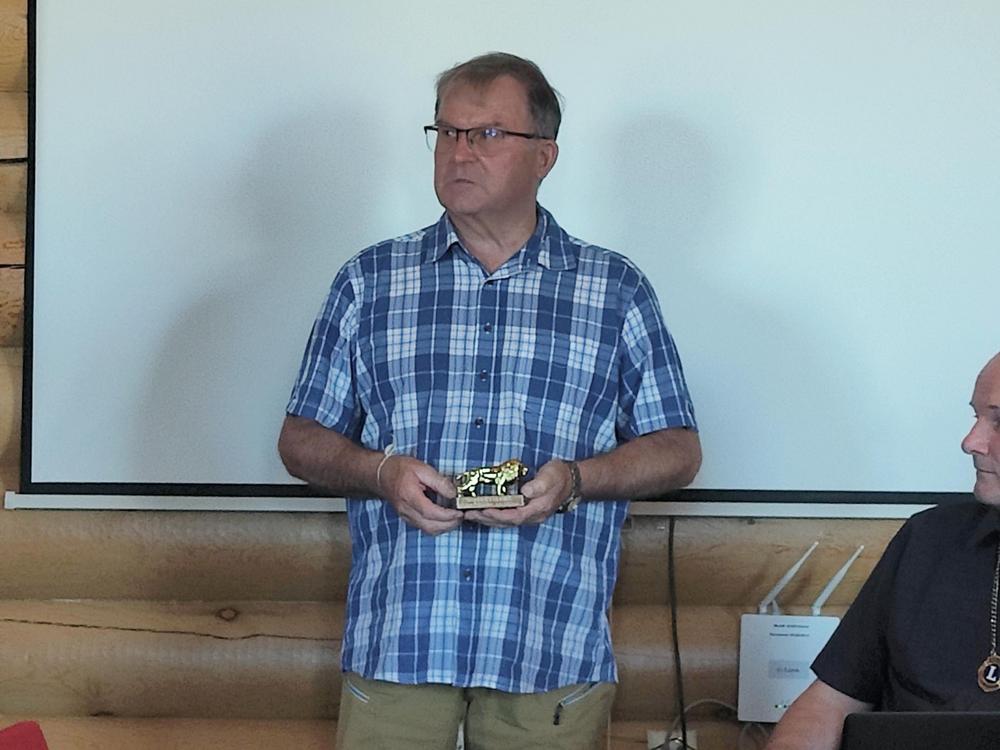 Kävimme läpi normaalit vaihtokokoukselle kuuluvat asiat, mikä sujui melkoisen sukkelaan. Tilaisuudessa viime kauden presidentti oli valinnut Vuoden Leijonaksi Jukka-Pekka Alasuutarin ansiokkaasta toiminnastaan klubissa. JP on ollut aina valmiina auttamassa sekä klubin aktiviteeteissa että myös henkilökohtaisella tasolla.