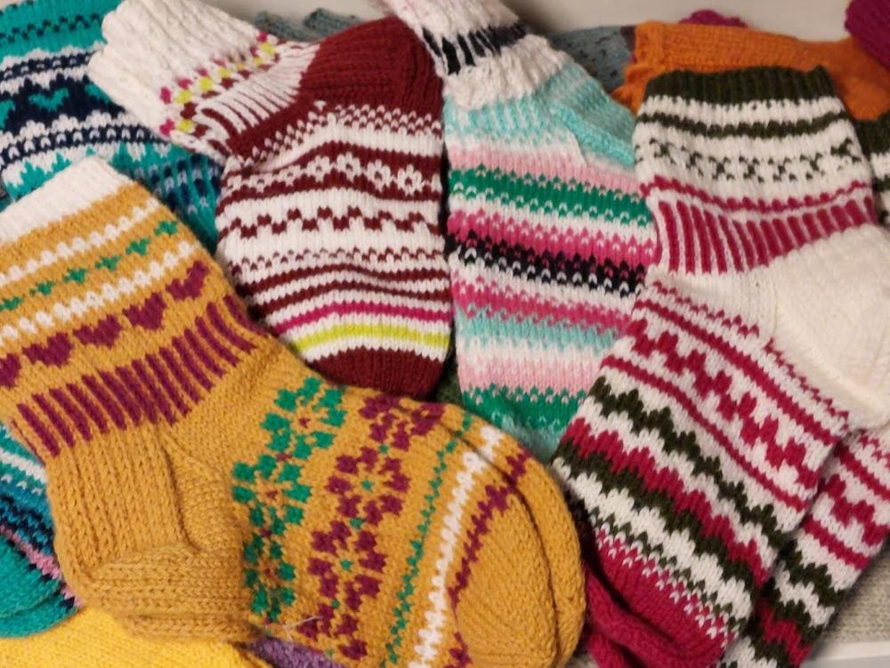 Sukkiakin on jälleen neulottu joulupusseja varten.
