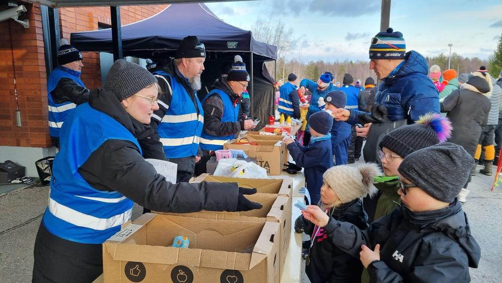 Nappulahiihdoissa oli myös arvontaa, makkaranpaistoa ja ihan pienimmät kisaajat viihtyivät hiihtourakkansa jälkeen myös koulun pihan leikkialueella.