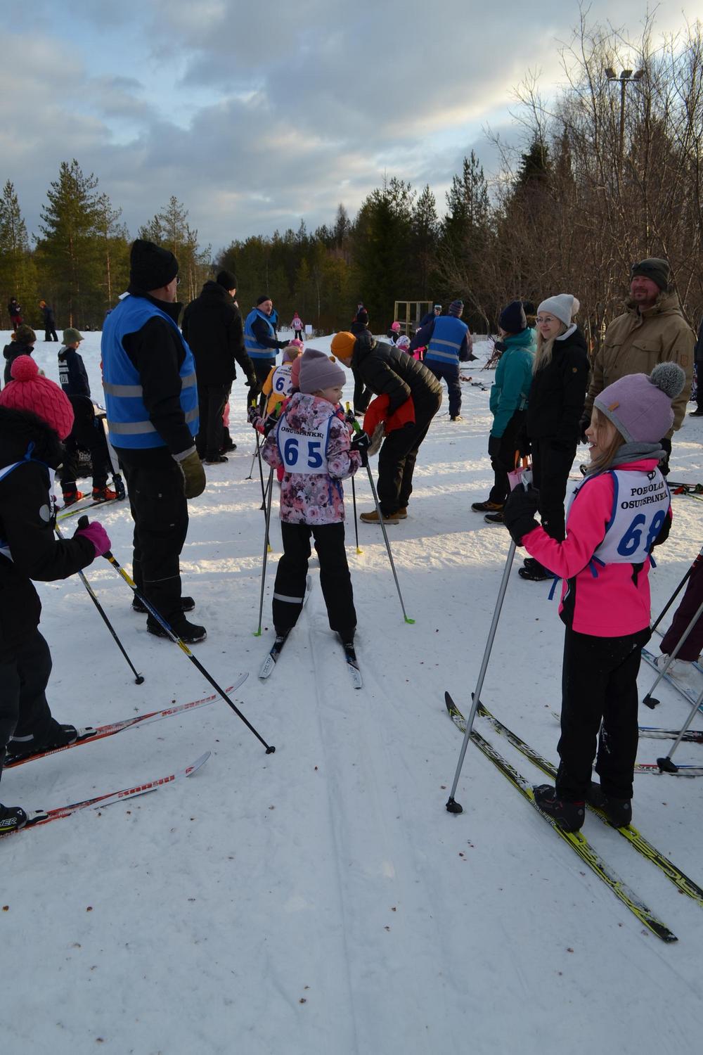 Hiihtokisaan saapui 110 innokasta nappulahiihtäjää runsaiden kannustusjoukkojensa kanssa ja vilske koulun 0,3 km, 0,8 km ja 1,3 km:n hiihtoladuilla olikin melkoinen. Hiihtourakan jälkeen kisaajat saivat kuumaa mehua lämmikkeeksi ennen palkintojenjakoa.