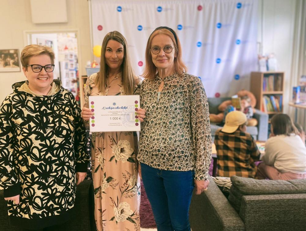 MLL: n puolesta lahjoituksen vastaanottivat perhepalvelupäällikkö Tiia Nyman ja piirihallituksen puheenjohtaja Ritva Olsen. Ronjista lahjoituksen kävi luovuttamassa presidentti Sirkka Lankila.