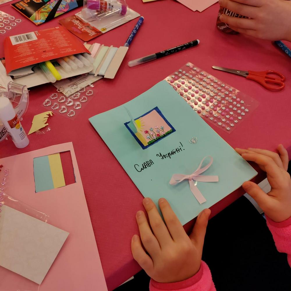 sanat avautuvat pikkuhiljaa. Taitavat ukrainalaislapset ovat askarrelleet kevään aikana mm. kauniita kortteja läheisilleen, upeita laivoja, joita he ovat nimenneet