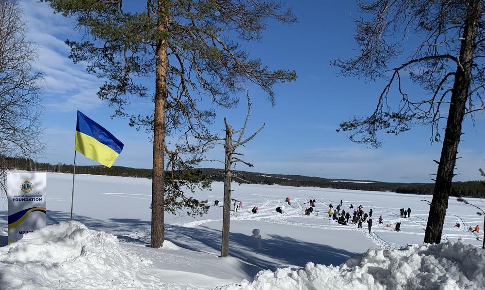 Keväinen huhtikuun päivä hemmotteli ukrainalaisia ja Rovaniemen lioneja yhteisessä LCIF:n apurahan avulla järjestetyssä pilkkitapahtumassa Songan Oitolanrannassa.
