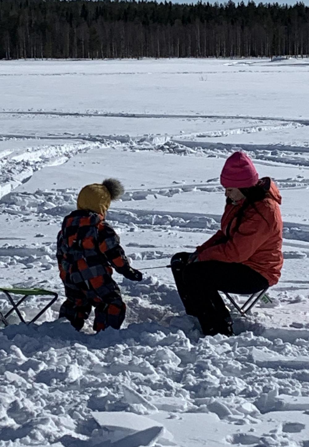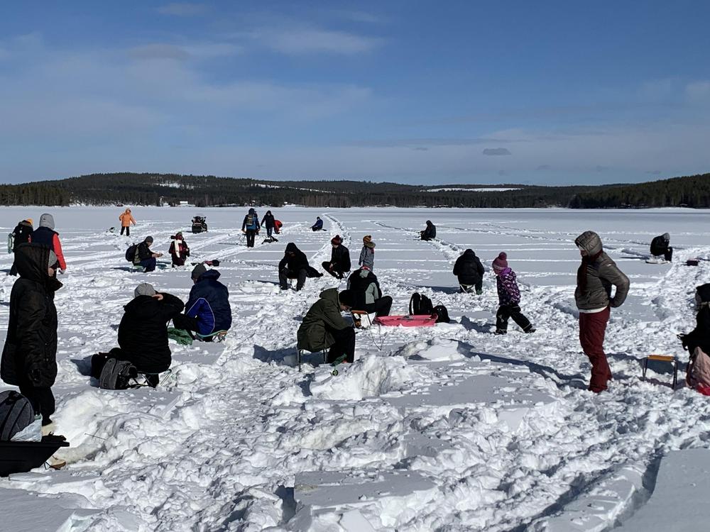 Keväinen huhtikuun päivä hemmotteli ukrainalaisia ja Rovaniemen lioneja yhteisessä LCIF:n apurahan avulla järjestetyssä pilkkitapahtumassa Songan Oitolanrannassa.