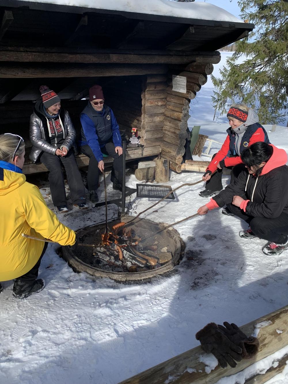 Makkarat ja vaahtokarkit paistuivat nuotiolla ja kyläyhdistyksen valmistamat munkit ja kahvi tekivät kauppansa. Rovaniemen ukrainalaiset vaihtoivat kuulumisia ja tutustuivat tosiinsa ja paikallisiin lioneihin lämpimässä kodassa rennosti jutustellen.