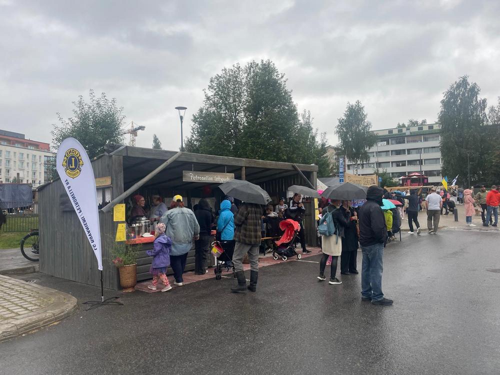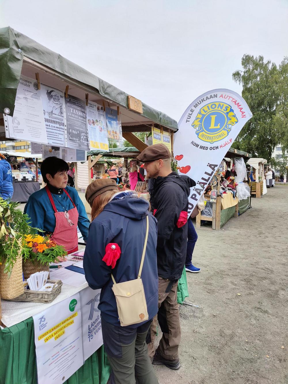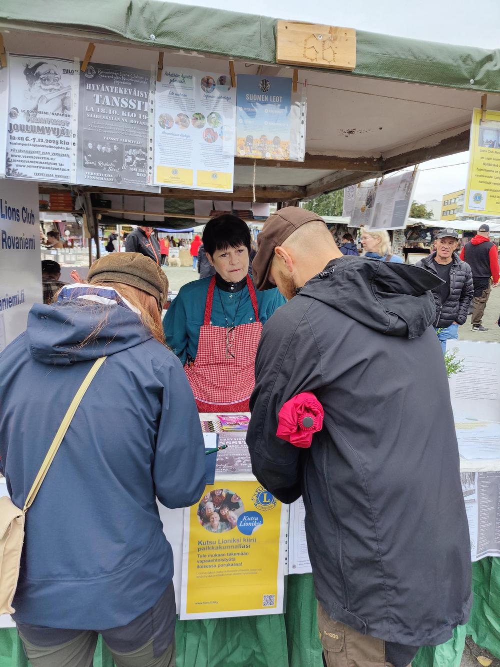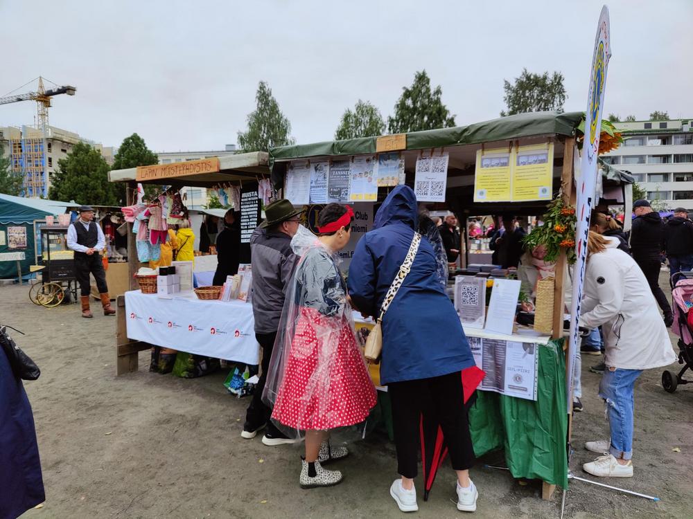 Tänään Rovaniemen Wanhoilla Markkinoilla oli eilisenkaltainen pilvinen ja hieman loppupäivästä sateinen sää, mutta se ei markkinakansaa häirinnyt. L-piirin kojulla oli jälleen ihan mukavanlainen kuhina ja saimme kiinnostavia ja innostavia keskusteluja kävijöiden kanssa.