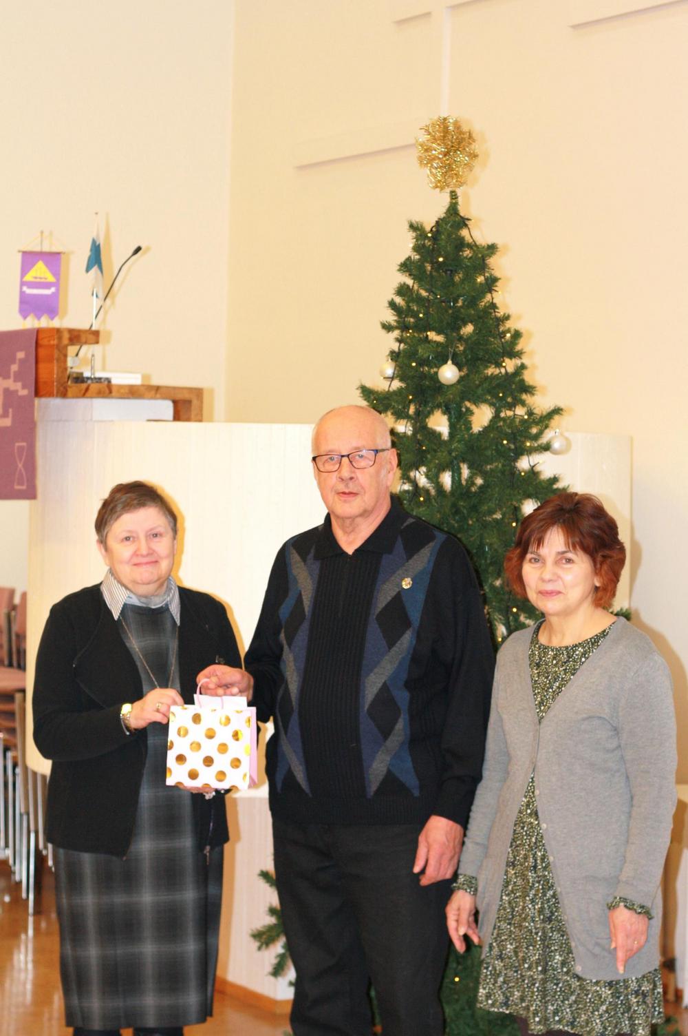 Kuvassa vasemmalta Kemin seurakunnan johtava diakoniatyöntekijä Teija Jestilä, Lions Club Kemin presidentti Raimo Torvela ja diakoniatyöntekijä Päivi Rimpiläinen.