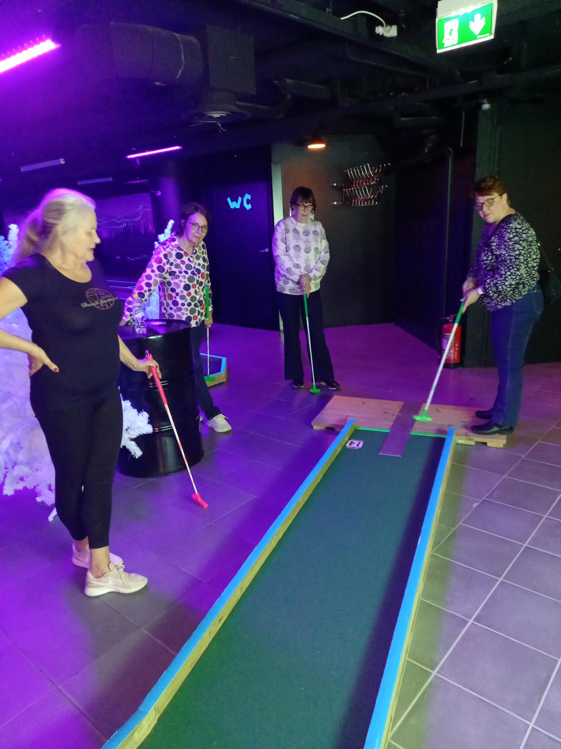 Marraskuinen vesisade ropisi, tuuli ujelsi nurkissa ja pimeys oli laskeutunut Rovaniemen ylle. Mutta LC Rovaniemi/Ronjien jäsenet eivät antaneet kaamoksen lannistaa – päinvastoin! Peräti 11 Ronjaa kokoontui hohtogolfaamaan ja onneksi sisätiloihin. Se oli ilta, jossa nauru ja valo loistivat kilpaa neonväristen pallojen ja mailojen kanssa.
