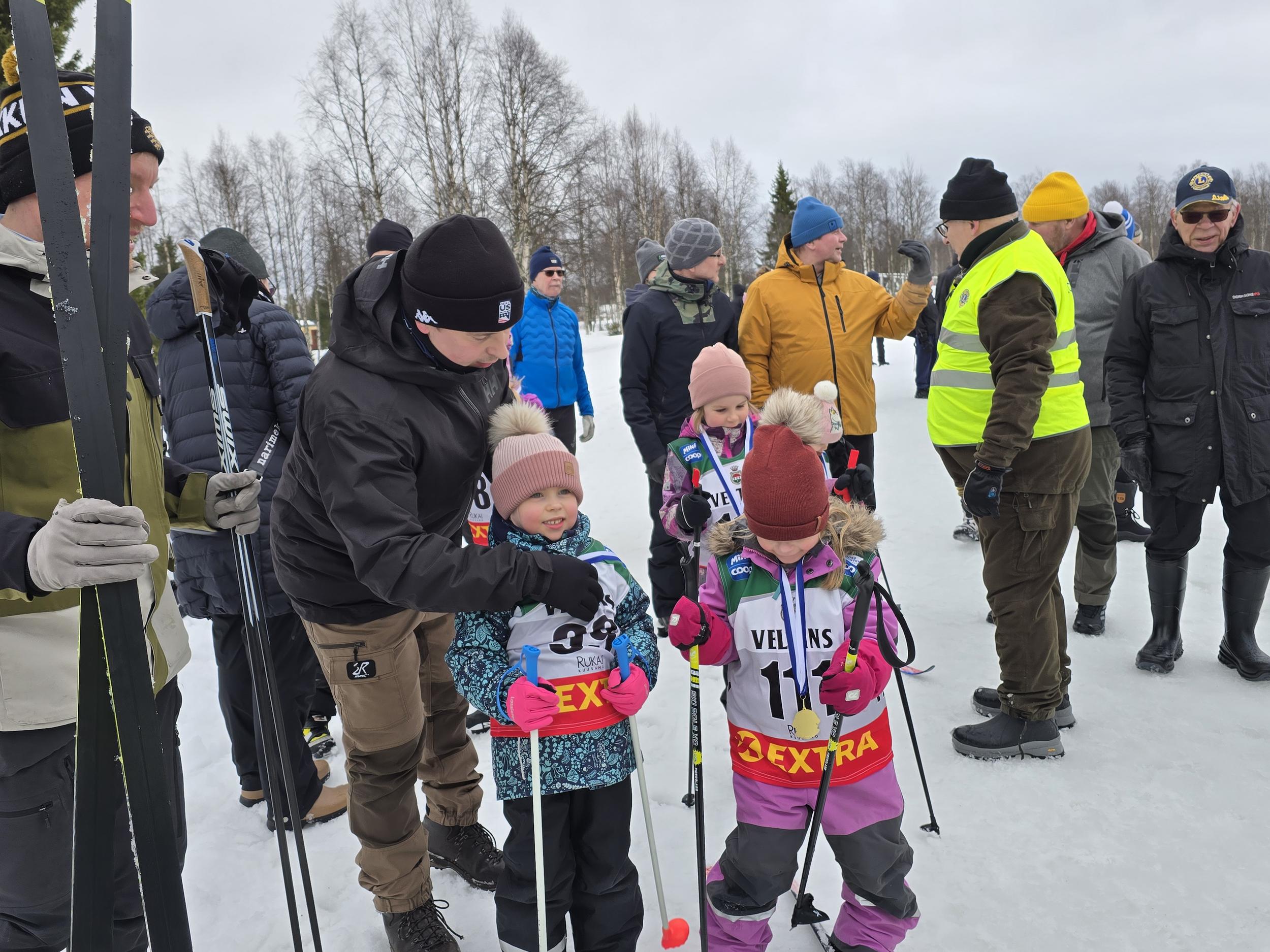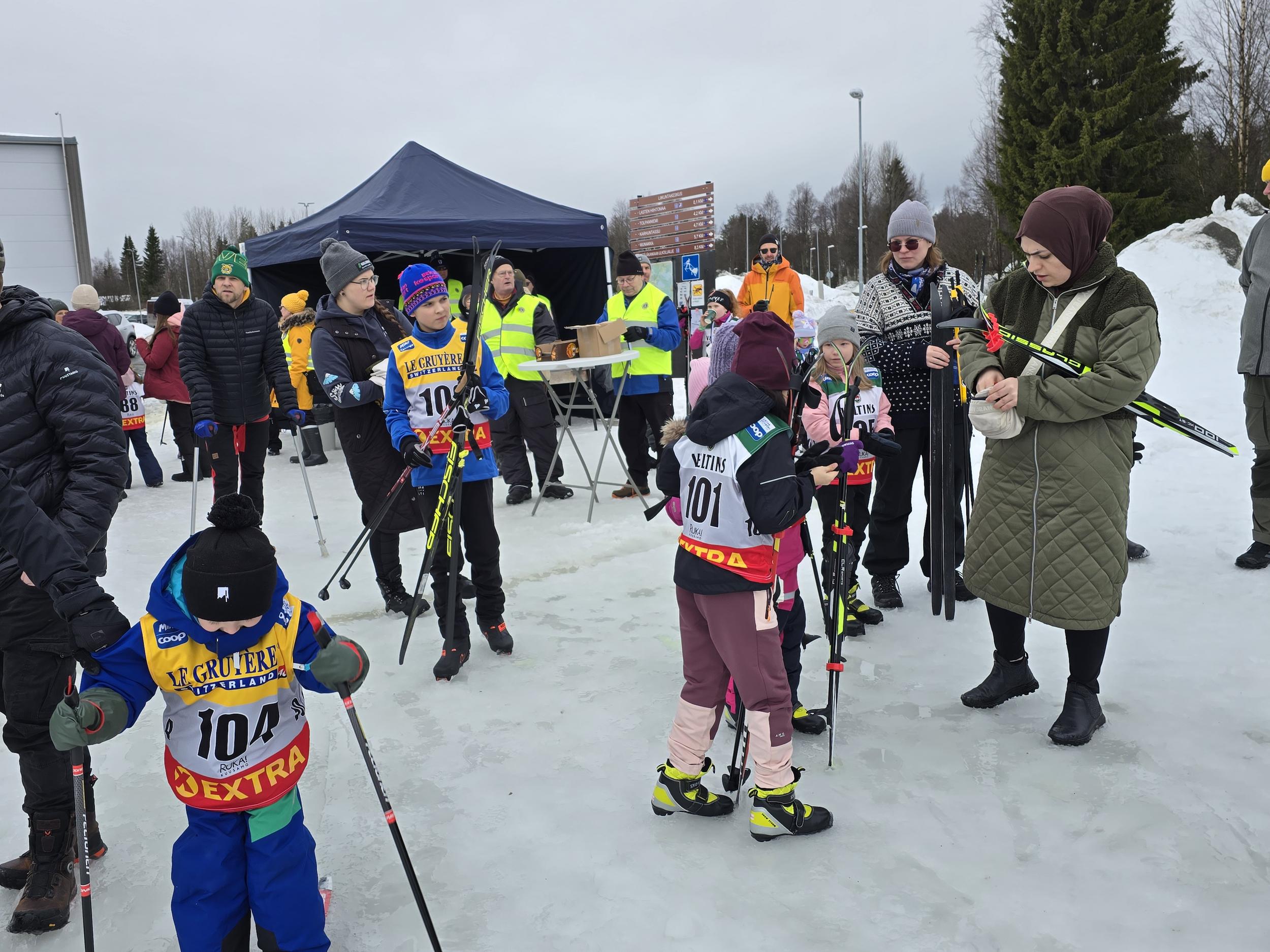 Huoltojoukkoja oli yli tuplasti auttamassa ja ohjaamassa nuoria hiihtäjiä. Lähes puolet Kuusamon lioneista osallistui järjestelyihin, joissa oli apuna Kuusamon Erä-veikot.