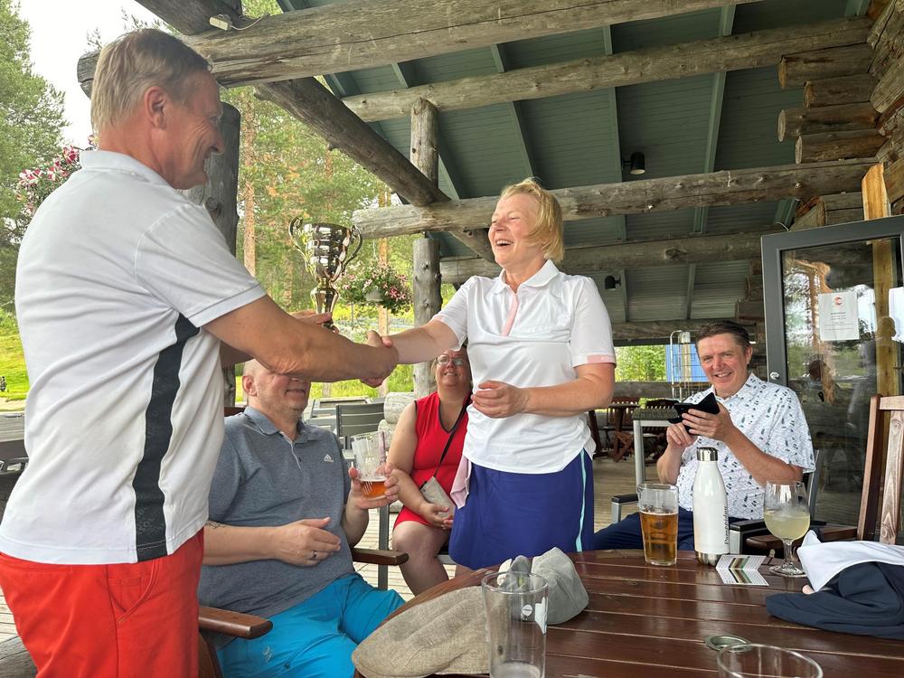 Vuoden 2024 voittopokaali matkasi Sodankylään Satun ja Jarin mukana. Kiitos kaikille mukana olleille. Viimeistään kesällä 2025 tapaamme viheriöillä uudelleen.