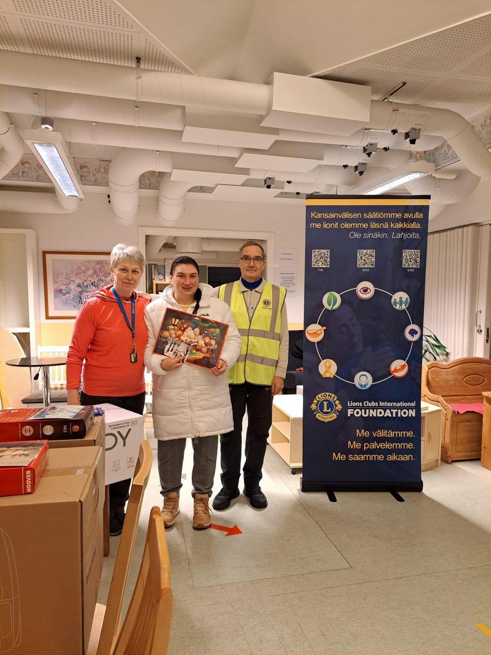 Lauantaina oli klo 10 alkaen LCIF:n apurahatuella ostettujen pienempien kodinkoneiden, tuotteiden ja kerrastojen ensimmäinen jakotilaisuus Ritarinteellä. Jälleen oli tyytyväisiä ukrainalaisia ja tyytyväisiä lioneja!